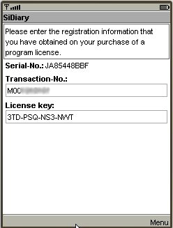 If you have purchased a SiDiary USB stick, you can find the transaction number by starting SiDiary on the stick and then switch into the menu 'Help -> Register'.
