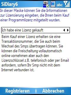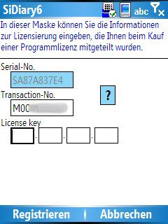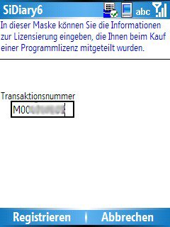 SiDiary Windows Smartphone mit Transaktionsnr. freischalten
