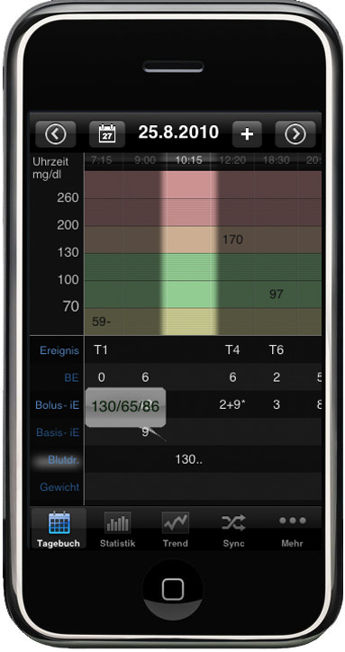 Eine Bedienungsanleitung finden Sie hier: Bedienungshinweise zur iPhone-Diabetes-App