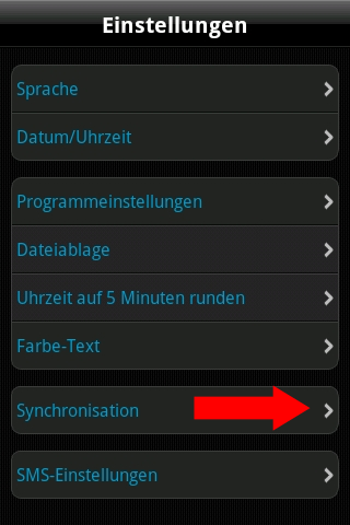 In der Android-App klicken Sie bitte unten auf 'Setup >>Einstellungen >>Synchronisation'